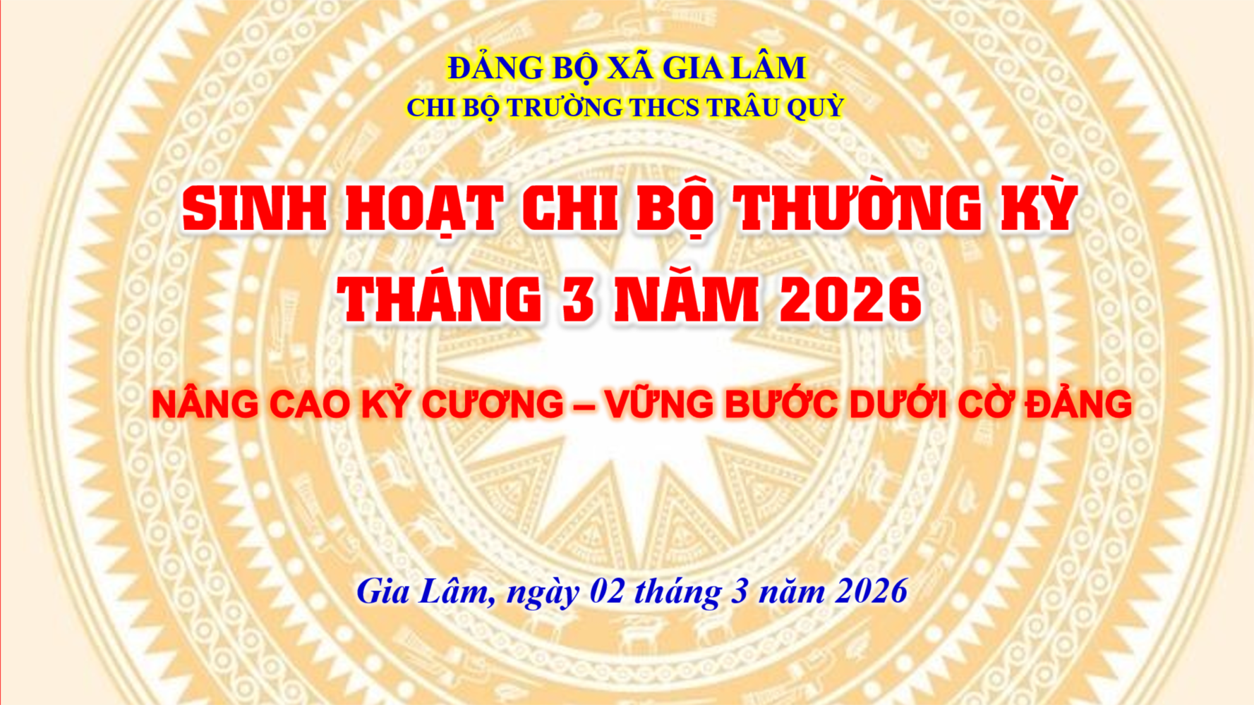 Trong không khí thi đua sôi nổi của những ngày đầu xuân Bính Ngọ, ngày 02/03/2026, tại Phòng Hội đồng sư phạm, Chi bộ Trường THCS Trâu Quỳ đã trang trọng tổ chức kỳ họp Chi bộ định kỳ tháng 3/2026.