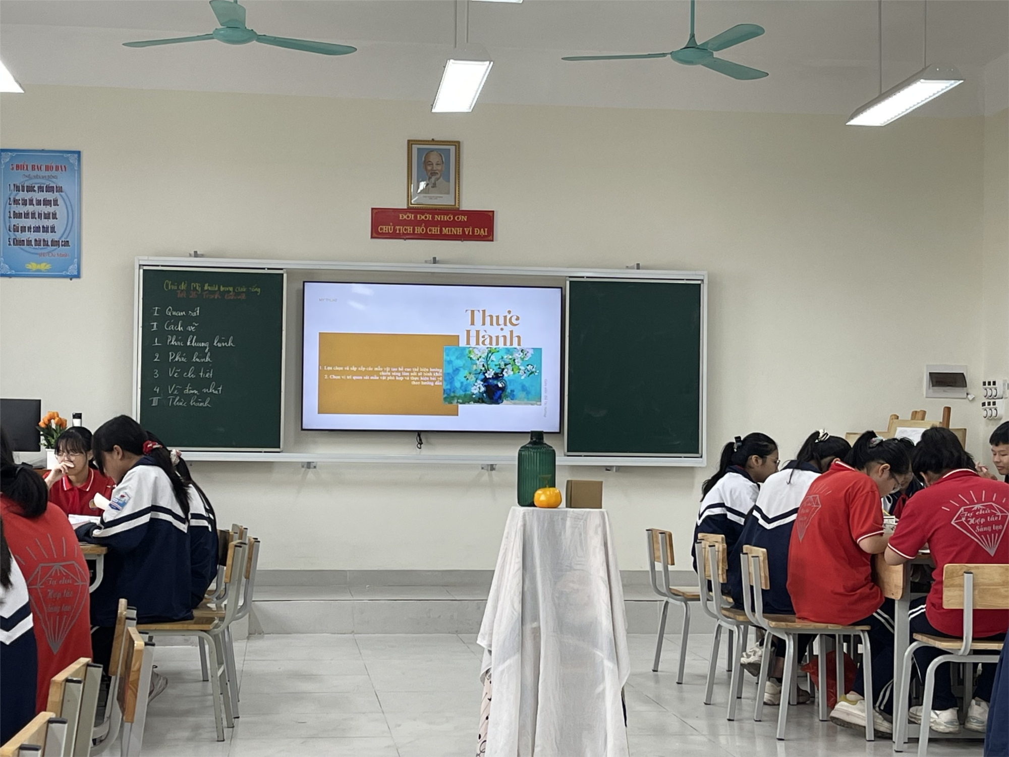Học sinh thực hành vẽ theo vật mẫu