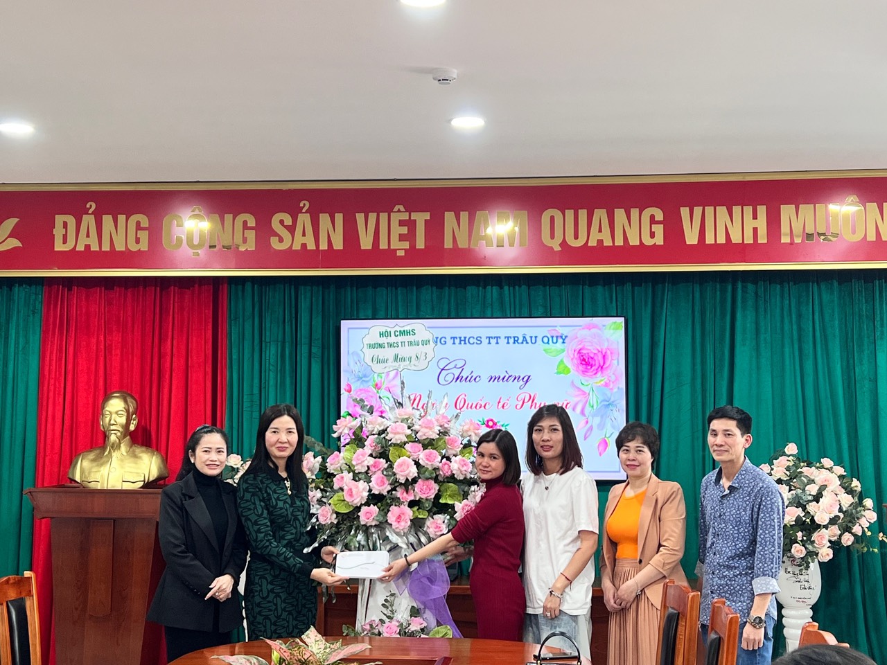Thay mặt cán bộ, giáo viên, nhân viên nữ của nhà trường, cô giáo Đỗ Thị Hải Yến - Bí thư chi bộ, hiệu trưởng nhà trường đã cảm ơn sự quan tâm của ban đại diện hội cha mẹ học sinh nói riêng và toàn thể phụ huynh của trường THCS TT Trâu Quỳ nói chung đến tập thể nhà trường. Cô mong rằng trong tời gian tới nhà trường tiếp tục nhận được sự quan tâm, đồng lòng của hội cha mẹ học sinh trong tất cả các hoạt động của nhà trường để tiếp tục đưa sự nghiệp giáo dục của nhà trường ngày càng phát triển.