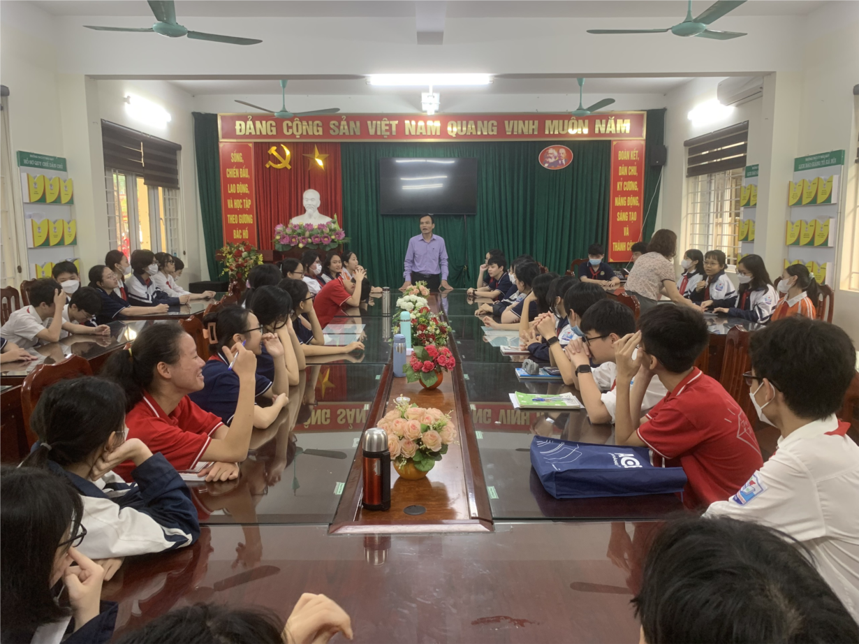 Phát biểu tại buổi gặp mặt, thầy giáo Hoàng Văn Khuê-Phó hiệu trưởng nhà trường đã ghi nhận những nỗ lực ôn tập của toàn thể đội tuyển trong thời gian vừa qua, đồng thời động viên các em hãy thật bình tĩnh, tự tin; phát huy hết năng lực, sáng tạo của mình để đạt được thành tích cao nhất trong kỳ thi này.