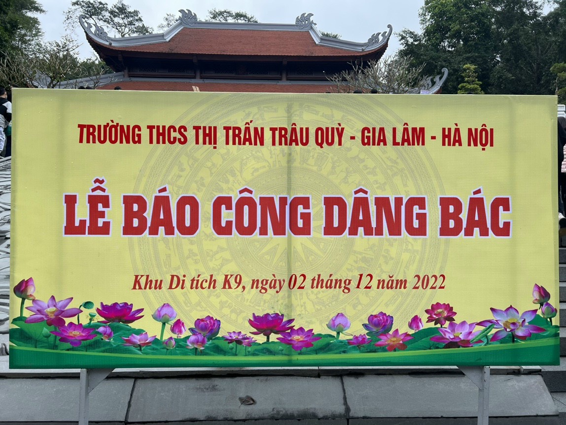 Trường THCS Thị Trấn Trâu Quỳ, Hội phu huuynh nhà trường đã tổ chức đoàn đại biểu là các thầy giáo, cô giáo và các em học sinh tiêu biểu có thành tích xuất sắc trong công tác giảng dạy và học tập trong toàn trường để báo công dâng Bác tại khu di tích K9.