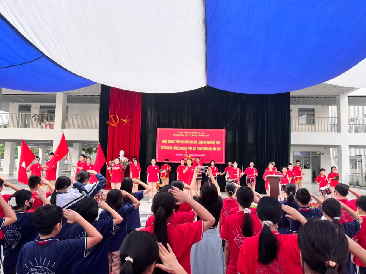 Sáng hôm nay hơn 1567 em học sinh cùng toàn thể giáo viên Trường THCS TT Trâu Quỳ được phổ biến kiến thức về Luật Phòng, chống ma túy, Luật Giao thông đường bộ. Đặc biệt, với hình thức sân khấu hóa, gồm phần diễn đàn tìm hiểu kiến thức pháp luật tiểu phẩm đã chuyển tải sinh động, hấp dẫn các nội dung tuyên truyền.
