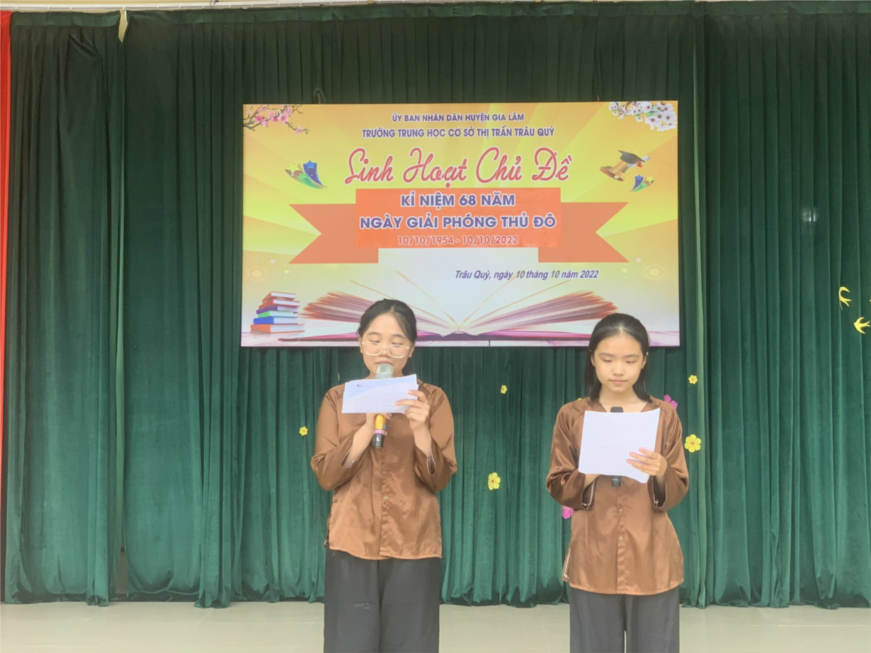 Qua tiết mục văn nghệ và câu hỏi tìm hiểu, đã khơi dậy lòng tự hào dân tộc, tình yêu Hà Nội trong trái tim thầy và trò trường THCS TT Trâu Quỳ. Chúng ta hãy cùng quyết tâm học tập thật tốt.