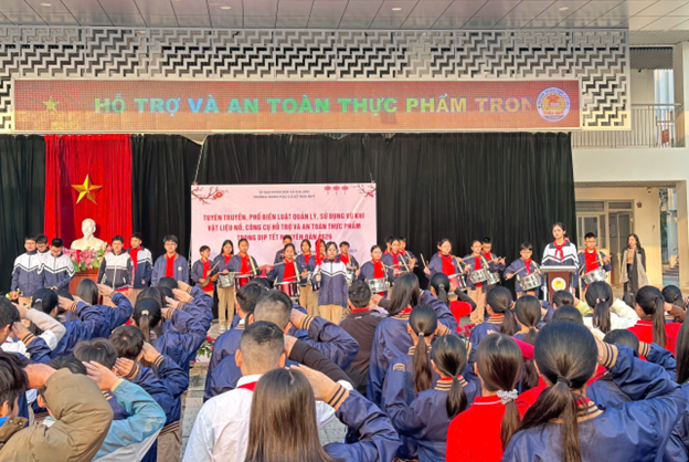 Khép lại chương trình là các tiết mục văn nghệ sôi nổi, trong sáng do đội văn nghệ học sinh nhà trường biểu diễn, góp phần tạo không khí vui tươi, phấn khởi và thu hút sự chú ý của toàn trường, đồng thời truyền tải thông điệp về một mùa xuân an toàn, lành mạnh, không pháo nổ.