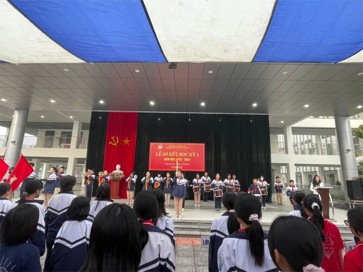 Sáng ngày 15/1/2024, Lễ Sơ kết học kỳ I của trường THCS TT trâu Quỳ đã được tổ chức trong niềm hân hoan, phấn khởi. Lễ sơ kết là dịp để thầy và trò nhà trường cùng nhìn lại học kỳ I của năm học 2023-2024 – năm học với chủ đề "Đoàn kết, kỷ cương, sáng tạo, tiếp tục đổi mới, nâng cao chất lượng giáo dục".