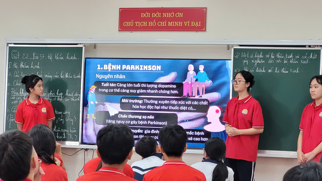 Qua hoạt động nhóm giúp các em phát triển kĩ năng hợp tác, các em được cùng nhau nghiên cứu, tìm hiểu các tài liệu ngoài sách vở để về các bệnh lý liên quan đến hệ thần kinh như Alzheimer, Parkinson, đột quỵ, tai biến…; nhận biết các chất gây nghiện đối với hệ thần kinh như ma tuý, rượu… giúp các em cảnh giác và có biện pháp phòng ngừa, đặc biệt là trong môi trường học đường và cộng đồng, phát hiện sớm tình trạng lạm dụng chất gây nghiện và can thiệp kịp thời để bảo vệ sức khỏe và hạnh phúc của cá nhân.