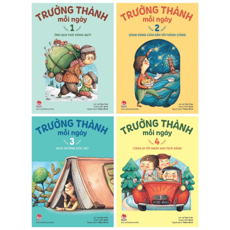 “Trưởng thành mỗi ngày” là bộ sách được dành riêng cho các em nhỏ, những cuốn sách chứa đựng các câu chuyện tuyệt vời về tình thân, tình bạn và những phẩm chất đáng quý của con người. Bộ sách bao gồm 4 tập do Nxb Kim Đồng xuất bản vào năm 2020