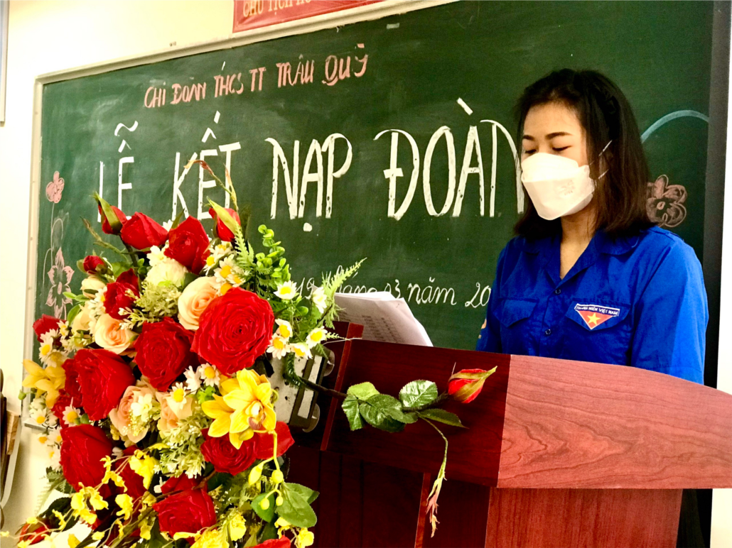 Trong đợt kết nạp đoàn viên mới lần này, có 66 thanh niên ưu tú là HS của khối 9 trường THCS TT Trâu Quỳ. Các em đã có nhiều thành tích xuất sắc trong học tập, trong các hoạt động của Đội, Thanh niên, các em đã thể hiện tinh thần xung kích của thanh niên trong một thời gian dài phấn đấu và qua bình xét các tiêu chí từ các Chi hội thanh niên, từ xem xét theo dõi của thầy cô giáo, của BGH nhà trường, được sự đồng ý của Chi bộ cho phép Chi đoàn trình đề nghị Đoàn TT Trấn Trâu Quỳ xét kết nạp. Kể từ đây các em đã thực sự trưởng thành, các em được mang trên mình chiếc huy hiệu Đoàn, các em được hát bài truyền thống Đoàn TNCS Hồ Chí Minh, được thể hiện mình, được tham gia, xung kích trên các mặt hoạt động của thanh niên.