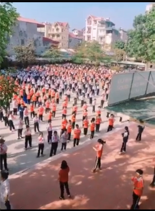Đã thành thói quen, mỗi khi nghe tiếng trống báo hiệu giờ ra chơi sau tiết 2 là các em học sinh Trường THCS Thị Trấn Trâu Quỳ cùng náo nức ùa xuống sân trường để sẵn sàng bước vào bài TD giữa giờ. Nhìn từng nhóm học sinh nhanh chóng xếp thành hàng ngay ngắn, thật ấn tượng khi thấy các em tự tin hòa mình vào các động tác múa hát, TD một cách say sưa, từng động tác tay đưa lên, đưa xuống thật nhịp nhàng kết hợp với động tác chân nhún nhảy đẹp mắt. Thay vì ra chơi vận động với những bài tập TD lặp đi lặp lại, thì 3 năm nay, nhà trường đã duy trì và đổi mới hoạt động TD giữa giờ kết hợp với múa hát sân trường sôi nổi, hấp dẫn, thu hút học sinh. Nhờ hoạt động múa hát tập thể sân trường mà những em còn nhút nhát, thiếu tự tin đã mạnh dạn hơn.