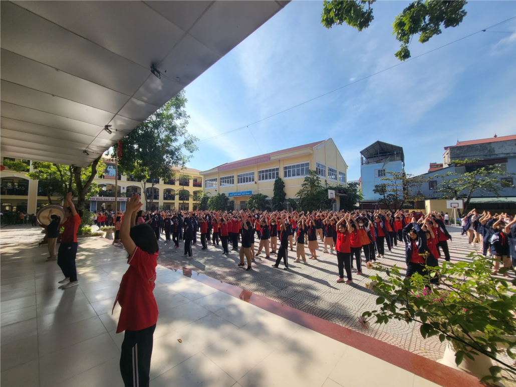 Nhằm tăng cường giáo dục thể chất cho học sinh trong nhà trường, ngay từ đầu năm học nhóm giáo viên bộ môn thể dục đã triển khai hoạt động tập thể dục giữa giờ cho các em học sinh từ khối 6 đến khối 9. Để tăng sự hứng thú khi tham gia hoạt động này, các thầy cô đã chọn một điệu Zumba trên nền nhạc bài Toca-toca sôi động gồm những động tác cơ bản được biên đạo phù hợp với năng lực, sở thích của các em học sinh. Theo ghi nhận, các em đều rất hào hứng tham gia hoạt động này. Do điều kiện sân trường hẹp không thể triển khai tập toàn trường nên các thầy cô đã chia các khối tập theo các ngày thư sau: Khối 8,9-tập các buổi thứ 2, 4, 6; khối 6,7-tập các buổi thứ 3, 5, 7.