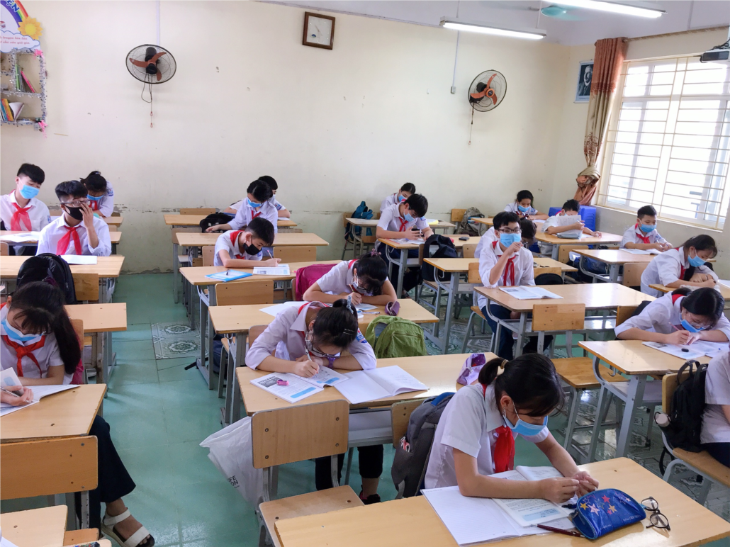 Để đảm bảo an toàn trong phòng, chống dịch bệnh, Nhà trường đã bố trí giờ đến trường của các khối lệch nhau 15 phút, cụ thể: giờ có mặt tại trường của học sinh khối 9 là 7 giờ 00 phút và khối 7 là 7 giờ 15 phút.