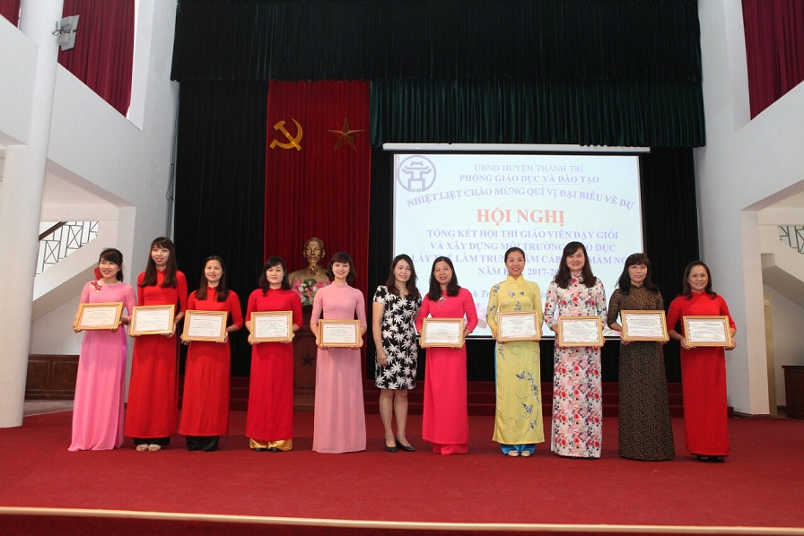 Kết quả hội thi Giáo viên dạy giỏi cấp huyện 100% các trường có khu vui chơi thể chất, chơi cát nước; 36/38 trường có không gian sáng tạo, phòng nghệ thuật; 29/38 trường đảm bảo 50% diện tích sân vườn là sân cỏ; 4 trường có phòng chiếu phim; 01 trường mầm non có bể bơi dạy bơi cho trẻ mẫu giáo; 129 cô giáo đạt danh hiệu giáo viên dạy cấp huyện đạt tỷ lệ 98%. Trong đó 5 giáo viên đạt giải xuất sắc, 32 giáo viên đạt giải nhất, 58 giáo viên đạt giải nhì, 34 giáo viên đạt giải 3. Có 5 tập thể đạt thành tích xuất sắc trong công tác chỉ đạo và bồi dưỡng giáo viên dạy giỏi.