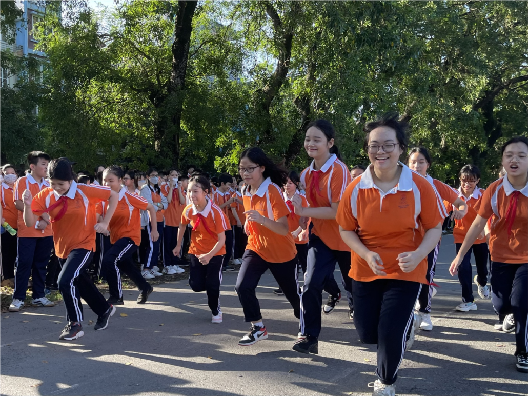 Ngay từ sáng sớm các em học sinh khối 8,9 của nhà trường đã tập trung đông đủ tại sân trường. Các em đều mặc đồng phục thể thao với tâm thế phấn khởi, hồ hởi sẵn sàng bước vào giải chạy.