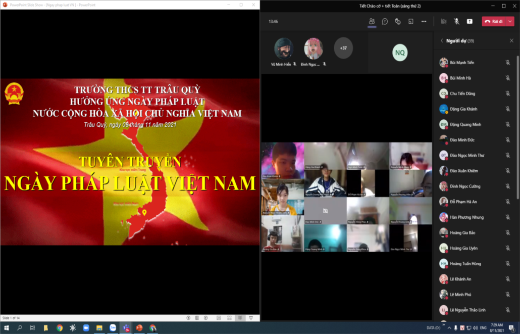 Nằm trong các hoạt động hưởng ứng “Ngày pháp luật nước cộng hòa xã hội chủ nghĩa Việt Nam” năm 2021, trường THCS TT Trâu Quỳ đã tổ chức nhiều hoạt động với các hình thức như: tuyên truyền trong các nhóm lớp, tổ chức cho 100% HS toàn trường tham gia cuộc thi trực tuyến trên phần mềm với nội dung gồm 30 câu hỏi trắc nghiệm về Pháp luật nước cộng hòa xã hội chủ nghĩa Việt Nam; tham gia Tìm hiểu Luật Luật Giao thông, luật trẻ em…