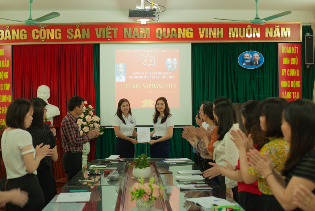 Dự lễ kết nạp có đại diện Đảng ủy, đại diện Ủy ban kiểm tra Đảng ủy, đại diện BCH Đoàn cơ sở, BCH Công đoàn, các đồng chí là quần chúng ưu tú và toàn thể đảng viên của Chi bộ Trường THCS TT Trâu Quỳ.