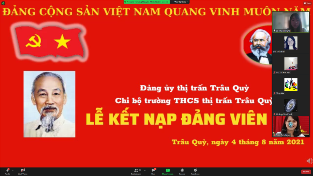 Tại buổi lễ, đồng chí Đỗ Thị Hải Yến - Bí thư Chi bộ Trường THCS TT Trâu Quỳ đã công bố và trao quyết định kết nạp đảng viên cho đồng chí Lê Thanh Dung. Đồng thời phát biểu chúc mừng Đảng viên mới sau một thời gian được bồi dưỡng, phấn đấu không ngừng, đã được vinh dự đứng trong hàng ngũ của Đảng Cộng sản Việt Nam, mong muốn đồng chí Đảng viên mới tiếp tục phấn đấu, rèn luyện về phẩm chất đạo đức, tác phong và hoàn thành tốt nhiệm vụ được giao; Đặc biệt phải thực hiện tốt nghĩa vụ của người Đảng viên trong thời gian dự bị theo quy định của điều lệ Đảng cộng sản Việt Nam.