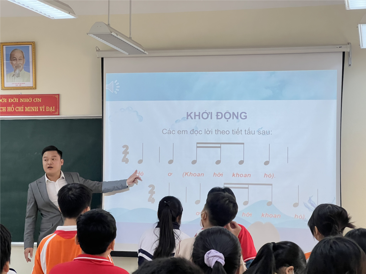 Để tăng hứng thú cho học sinh trong giờ học môn học này, các thầy cô giáo của nhóm đã không ngừng học hỏi, nâng cao trình độ chuyên môn, tìm tòi thêm nhiều những phương pháp giảng dạy, không chỉ giúp học sinh tiếp thu bài nhanh, nắm chắc kiến thức mà còn khiến các em hào hứng, say mê với môn học. Một trong số các phương pháp được thầy Lưu Đức Hiếu áp dung trong chuyên đề này đó là phát huy sự sáng tạo của các em trong khi biểu diễn các bài hát qua chuyên đề “Trải nghiệm sáng tạo trong biểu diễn ca khúc của học sinh THCS”, chủ đề “Giai điệu quê hương”, tiết 14 - Học hát bài “Lí kéo chài” dân ca Nam bộ, đặt lời mới Hoàng Lân. Trong tiết học, ngoài việc giúp học sinh có thêm hiểu biết về dân ca, dân ca nam bộ, về điệu Lí; hát đúng lời ca, giai điệu của bài hát…giáo viên còn giúp các em được thỏa sức sáng tạo các hình thức biểu diễn khác nhau làm cho tiết học thêm sinh động, lôi cuốn hơn.