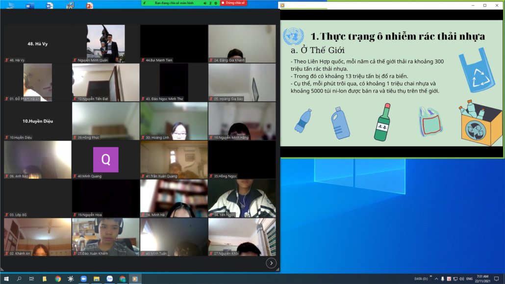 Dù hiện tại nhiều địa phương đang học online, nhưng điều đó không ảnh hưởng đến những tiết học về môi trường của Trường THCS TT Trâu Quỳ trong Tháng hành động bảo vệ môi trường "Nói không với rác thải nhựa dùng một lần" Hình thức học online còn là cơ hội để các cô trò thể hiện sức sáng tạo và tư duy mới mẻ về các vấn đề xã hội.