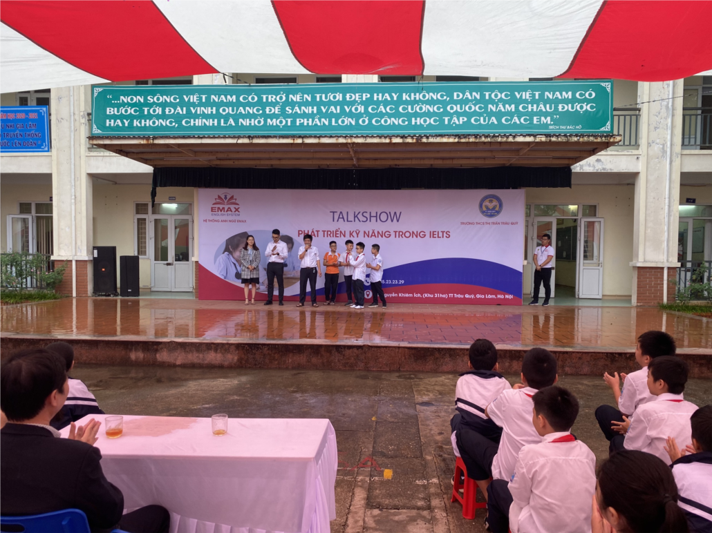 IETLS là một kỳ thi quốc tế đánh giá khả năng sử dụng tiếng anh. Để có kết quả tốt bài kiểm tra đủ 4 kỹ năng của chứng chỉ này cần một quá trình tích lũy kiến thức và trau dồi kỹ năng thật cẩn thận và đòi hỏi phải thực hiện trong 1 quá trình lâu dài. Xác định được tầm quan trọng trong việc rèn kỹ năng của người học tiếng anh nhằm mục tiêu học sinh có thể có chứng chỉ IETLS khi tốt nghiệp THPT, ngày 15/10 trường THCS TT Trâu Quỳ đã phối hợp với trung tâm anh ngữ EMAX tổ chức 1 buổi talk show nahwmf giúp học sinh hiểu rõ hơn về việc rèn các kỹ năng nghe-nói-đọc-viết để đáp ứng được kỳ thi IETLS trong tương lai.