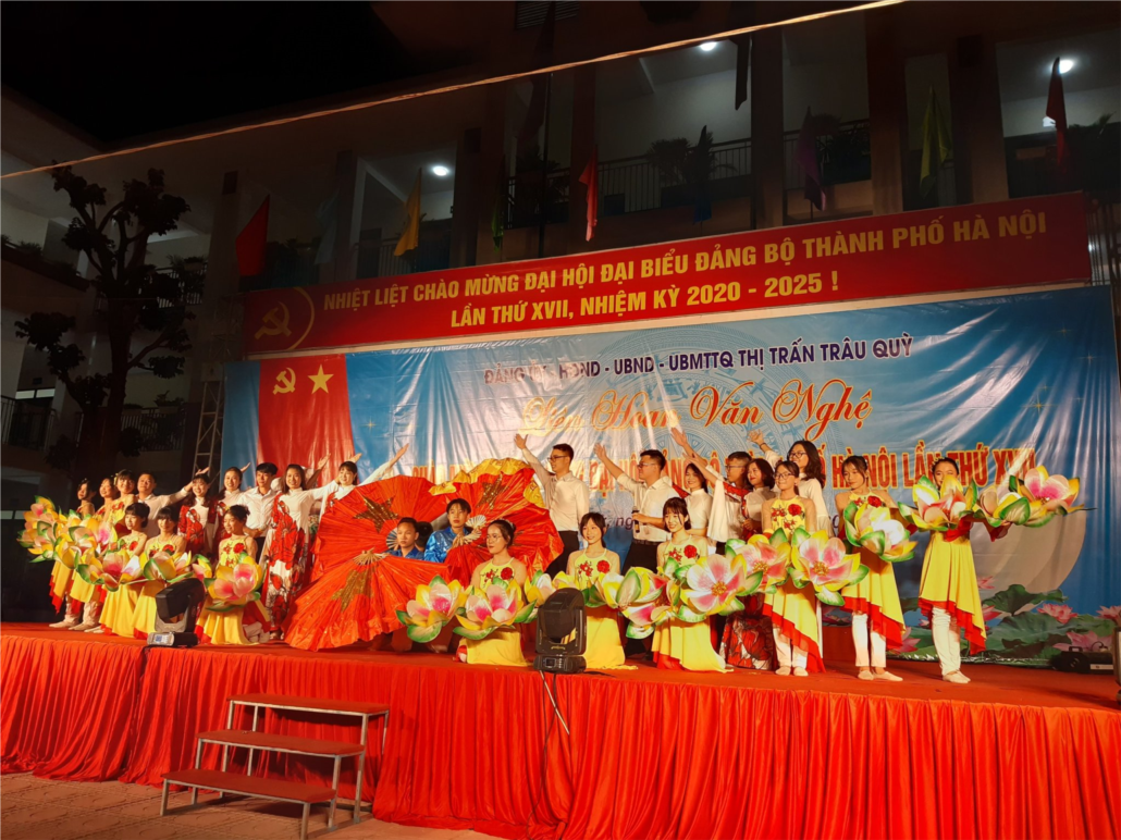 Buổi biểu diễn văn nghệ của Thị trấn đã kết thúc tốt đẹp, đội văn nghệ của nhà trường rất vui vì đã đem lời ca tiếng hát của mình hòa chung với không khí hân hoan, phấn khởi của nhân dân thủ đô nói chung và nhân dân Thị trấn Trâu Quỳ nói riêng chào mừng Đại hội đại biểu lần thứ XVII Đảng bộ Thành phố Hà Nội.
