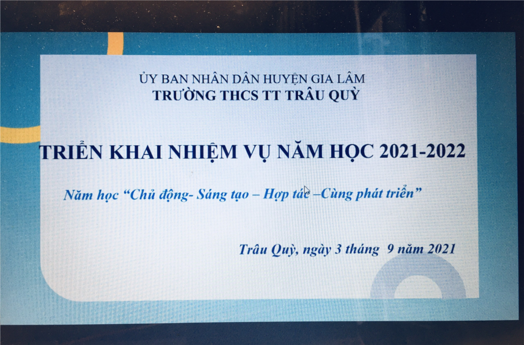 Mở đầu buổi tập huấn, đồng chí Đỗ Thị Hải Yến-Hiệu trưởng nhà trường đã báo cáo tổng kết công tác dạy và học năm học 2020-2021. Nhấn mạnh năm học 2020-2021 là năm học mà ngành GDDT nói chung và Trường THCS TT trâu Quỳ nói riêng đx trải qua rất nhiều khó khăn, vất vả bởi dịch bệnh covid-19 bùng phát trở lại và kéo dài, tuy nhiên đây cũng là năm học mà nhà trường đã đạt được những kết quả rất đáng tự hào.