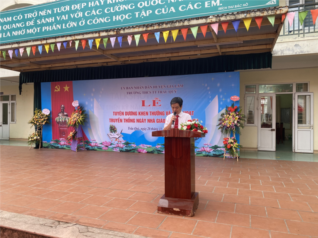 Đến dự buổi lễ tuyên dương khen thưởng và sinh hoạt truyền thống nhân ngày Nhà giáo Việt Nam 20/11 cùng thầy và trò nhà trường , về phía ủy ban thị trấn có bà Nguyễn Thị Thúy Hường-Phó bí thư Đảng ủy-Chủ tịch UBND Thị trấn Trâu Quỳ. Về phía hội cha mẹ học sinh có bà Hoàng Thị Tuyết Nhung-Chủ tịch hội phụ huynh học sinh nhà trường; 27 ông bà hội trưởng hội phụ huynh các lớp cùng toàn thể cán bộ, giáo viên, nhân viên và hơn 1000 học sinh của nhà trường đã tham dự đông đủ.