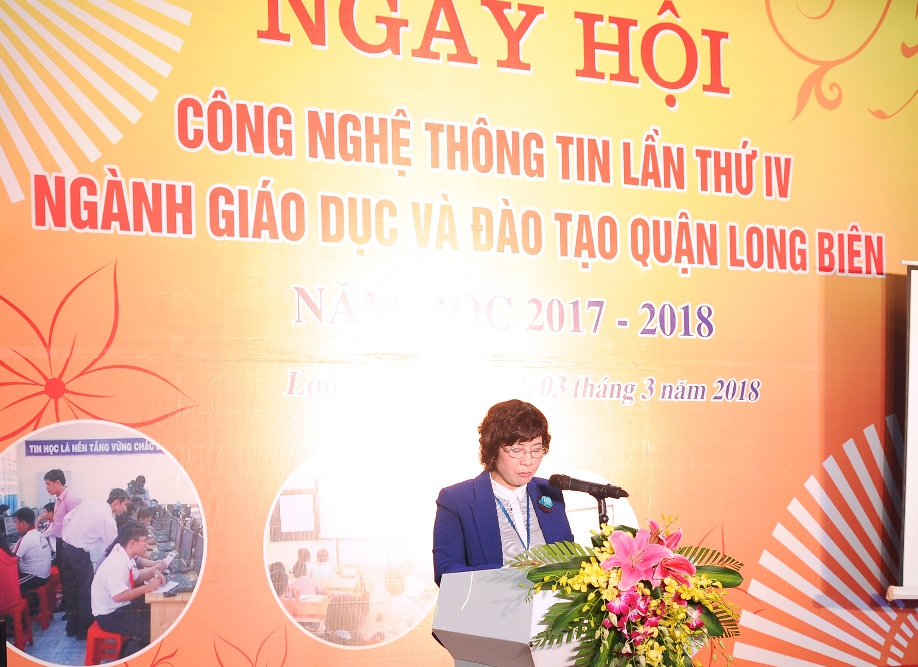 Trong khuôn khổ Ngày hội, chiều ngày 02/3/2018, phòng GD&ĐT Long Biên đã tổ chức Hội thảo “Nâng cao năng lực ứng dụng CNTT cho CBQL, giáo viên đáp ứng yêu cầu giáo dục thông minh”. Về dự Hội thảo có đồng chí Phạm Xuân Tiến- Phó Giám đốc Sở GD&ĐT Hà Nội, đồng chí Đỗ Văn Nam- Phó Chủ tịch Công đoàn Ngành Giáo dục Hà Nội, đồng chí Vũ Thị Thu Hà- trưởng phòng GD&ĐT Quận; các đồng chí lãnh đạo, chuyên viên phòng GD&ĐT Quận; các đồng chí cán bộ, giáo viên tiêu biểu các trường Mầm non, Tiểu học, THCS đại diện trên 3600 cán bộ giáo viên, nhân viên toàn Ngành GD&ĐT Quận.